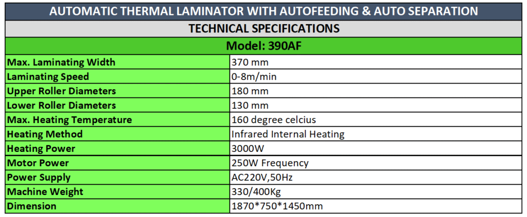 AUTOMATIC THERMAL LAMINATION MACHINE WITH AUTO FEED AND AUTO SEPARATION (Model: 390AF)