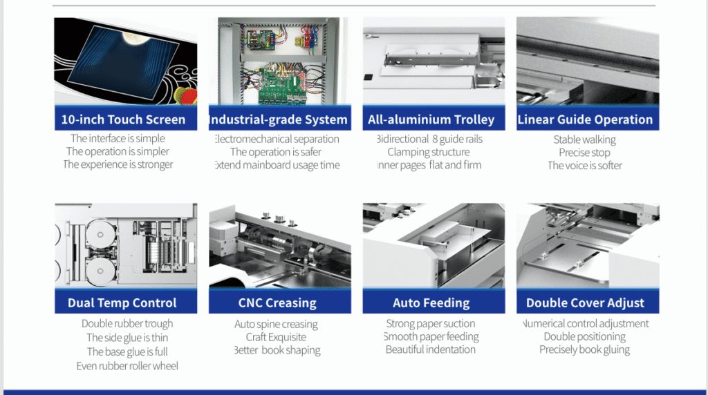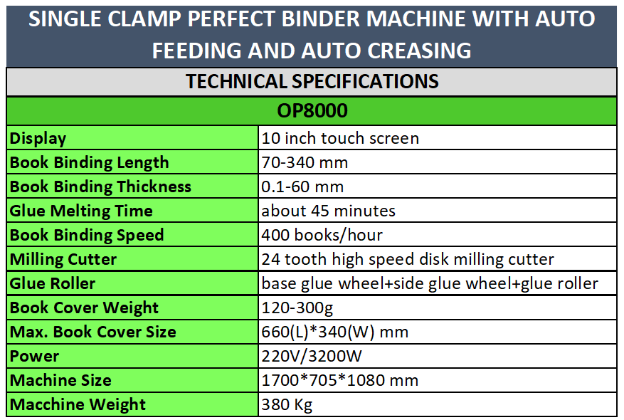 Single Clamp Perfect Binder with Autofeeding and Autocreasing OP8000 CALL NOW Facebook Twitter Youtube Whatsapp Skype DIGITAL POST PRESS EQUIPMENTS SINGLE CLAMP PERFECT BINDER MACHINE WITH AUTO FEEDING AND AUTO CREASING (OP8000) Machine Video